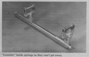There are two models of the Spring Extender. The CT 25600 is designed for springs up to 12 in. in length and up to 3 in. outside diameter. The CT 30000 handles springs from 12 to 20 in. long and up to 3 in. dia. The smaller model sells for $112.32 and the larger for $125.42.