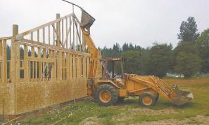 Backhoe Mounted Boom Lets Him Put Up Building Trusses Himself