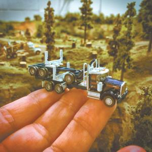They Customize Tiny Model Trucks & Trains FARM HOME Novelty Items FARM SHOW has done plenty of articles on toy model collections and builders but we are fascinated by the detail in these 1/160 “N Scale” models They are tiny enough so you can hold a replica of a 70-ft semi truck in your hand yet have moveable working parts Truckers Buster Bush from Louisiana and David Whiteside from Australia have collected them for years and since retiring from the road now focus on building kit models customizing and scratch-building Whiteside joined the Australian Army at 17 so he could drive truck rather than wait until he was 20 to drive as a civilian Single and on the road he collected 1/87 HO scale trains and trucks at first “N Scale was very crude in the 1960’s In the early 90’s they evolved in quality ” Whiteside says He collects Limited Editions from Trainworx out of Colorado is a big fan of Southern Pacific Railroad and as a trucker has a soft spot for movie replica trucks like those seen in Smokey and the Bandits and B J and the Bear Many of the pieces in his collection started as kits that he changes to suit himself He adds cab-mounted air conditioning units to earlier model trucks for example One of his most challenging pieces was recreating a real 1976 Kenworth logging truck based on photos and a 1/24-scale version of the truck “It took a lot of measurements parts and lug nuts ” he recalls Despite its miniscule size the brass wire in the thumb size A-frame hitch moves up and down Another favorite is the truck from the movie Black Dog With hours of online research he recreated the semi in N Scale Whiteside currently has a 14 by 7-ft model railroad displayed and he likes to photograph them to share on social media For example in honor of a friend in New York state he recreated her experience of a deer jumping in front of her while driving a pickup He even drilled tiny holes into a mini deer sign to look like it had been shot at In Louisiana Bush recreates train bridges trucks and other equipment he sees in his area His most detailed model started with a GHQ Peterbilt 379 kit that he heavily modified to create a tri-axle truck with a 50-ton lowboy carrying two heavy-duty forklifts “I made it to go with the portable car crusher I made ” Bush says noting no one commercially sells N Scale car crushers He made a silicone mold to create the resin parts for the crusher and has sold a few including one to an Australian collector Bush also made a model of the Chevrolet C-70 car hauler one of many trucks he used to own Bush notes that he recycles computer parts medical parts and other scraps for his models Cut-up plastic straws become a load for a train car Bits of old floor tile turn into a stone wall for a train scene “You’re always letting your imagination run wild And it doesn’t cost anything to make stuff out of cigar tubes small tomato paste cans bobbins for train car loads or thimbles for tops of buildings ” he says He houses his trains trucks and farm equipment models in a 12 by 32-ft building where he can watch his trains and enjoy his collection He credits his wife for painting and photographing many of his models Both in their 50’s Bush and Whiteside work with magnifiers tweezer scalpels mini drills rotary and other small tools and cutters to build their micro models with resin styrene balsa wood and brass pieces The availability of 3D printing has also added another dimension Whiteside notes He works with companies like Shapeways to create small components or anything that can be CAD drawn Though Bush notes bigger scales are “easier on the eyes ” both love the challenge of N Scale and the fact that they can have thousands of models in a relatively small space Bush adds that he also has a 1/220 Z Scale train layout which is even smaller than the 1/160 N Scale Both retired truckers like to share their models and meet other collectors through social media sites and forums Interest in N Scale is growing “It’s not ‘he plays with trains’ anymore ” Whiteside says “It used to be the 3-ft rule If it looks good at 3 feet it was acceptable Now that’s out the window Digital photography shows the flaws and you can criticize your own work I want to do quality work We inspire each other ” Contact: FARM SHOW Followup Buster Bush 11634 Marlene Ave Denham Springs La 70726 ph 225 480-6479; olliepaws@aol com; Facebook: Buster Bush ; or David Whiteside P O Box 387 Ashmore City Qld 4214 Australia ph 61 401 438 441; dynodave6363@gmail com; Facebook/YouTube: Dynodave6363’s Photo & Video Blog and dynodave63; Instagram: southern pacific lines n scale