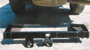 “The factory mounting frame on these pickup models consists of a round tube made from light gauge steel. One problem is the receiver hitch hangs from the bottom of the tube. When the weight of the trailer pulls the hitch down it pulls the bumper down with it, and the customer ends up having to straighten the bumper or replace it.”