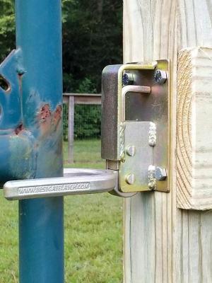 “The one-handed operation makes it easy to lead animals through, or carry buckets, halters, hay and other items. Also, the latch is designed so it can’t be opened by horses or other animals. A padlock can be used to lock it.”