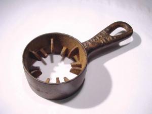 “I picked up one at an antique show years ago and was intrigued to learn more,” recalls Moffet. “I had no idea how many were made. They vary from homemade wooden types to patented cast iron and steel. Some are simple rings, and others are hinged, and still others have hand cranks.”