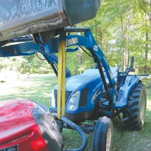 “I bought the hitch pins and strap at Harbor Freight and use them with my New Holland DC 48 loader tractor equipped with a 6-ft. bucket. I keep finding new uses for them all the time,” says Willett. “For example, lifting and moving 55-gal. barrels, and loading stuff into my pickup.