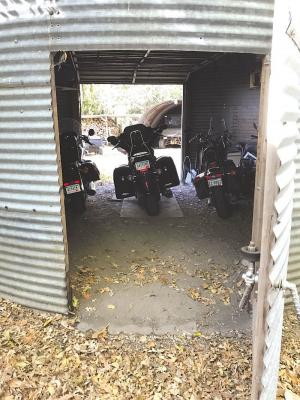 A 20-ft. bin was turned into a drive-through shed that’s equipped with a hand-operated garage door on one side and a cut-out door on the other side. The shed is used to store motorcycles and snowmobiles. Another 20-ft. bin is equipped with only a garage door.