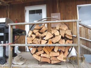 This double hoop holds a couple days’ worth of wood for the stove that heats our old ranch house. The hoop firewood holder makes a lot neater storage spot than the old messy pile on the porch.