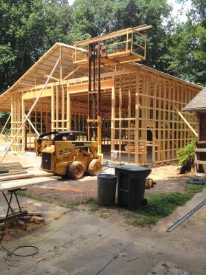 “I use the forklift and basket to lift pallets loaded with plywood and other materials to the upper floors of new homes. It greatly reduces the labor involved in hauling materials,” says Lewis. “The forklift can reach up under building rafters like a telehandler, but is much more maneuverable and fits into tight spots better.