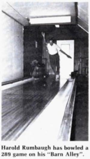 The nearest commercial bowling alley is 15 miles from Rumbaugh's home. "A person who likes to bowl can spend $25 a day just on bowling," says Harold of his $7,000 investment. "Rumbaugh Barn Alley", as he calls it, has a regulation lane 80 ft. long and 8 ft. wide. To accommodate the bowling lane, Harold and his two sons added a 40 ft. extension to the old barn that was about 45 ft. long. They insulated the building, put in a furnace and then installed the bowling alley.