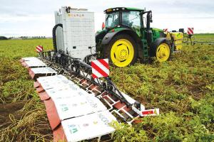 The application begins with the uniquely adapted and configured Volt.fuel being sprayed onto potato crops. The key formulation allows the active ingredient electric current to work effectively and minimize the amounts needed. As a result, the working width and treatment speed can be increased, and the plant application becomes even more targeted.