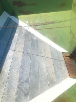 Instead, he used aeration flooring that had been salvaged from a local elevator. He cut the legs off the flooring and used self-tapping screws to attach it to the floor of the gravity box. Strips of salvaged metal roofing were screwed to the edge of the flooring as flashing.