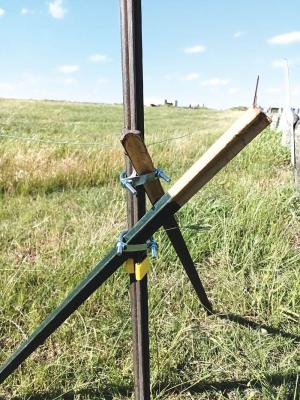 I make corner posts using three T-posts and U-bolts. I drive the braces into the ground and attach the tops to the corner post with either two smaller U-bolts or one big one. If the ground is really soft, I dig a 6-in. dia. hole around the brace postholes and surround with concrete. Really gets the job done. (Jack Griffith, Venus, Texas)