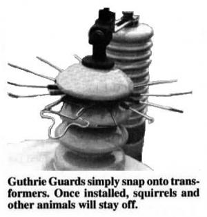 "I ordered 500 because I realized he was onto something," Klasing says. "In a little over a year, we've installed about 1,100 on our equipment in problem areas. We've had only three power outages from squirrels in that time - and all three of those were flukes, no fault of the product. That's a big win for our customers and a big win for us. I was $41,000 under my emergency call budget last year and 2/3 of that savings was the direct result of Guthrie Guards."