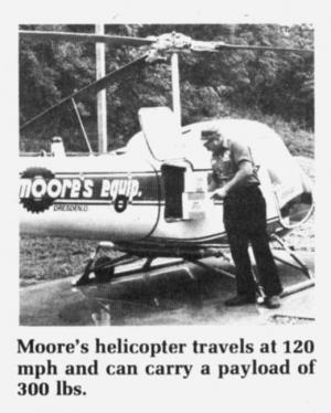 Moore says that the helicopter service has paid for itself every year since he started it. "The pay-off is in picking up more customers over a wider area and making more sales. Last year, for example, I got a new customer 40 miles away even though he has three dealers within 8 miles of his farm. The difference was that I can provide fast service and they can't," he says.