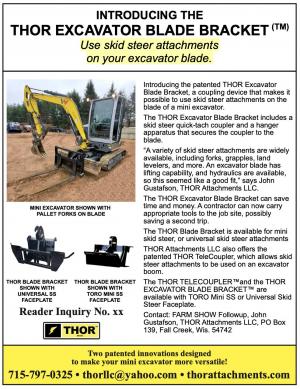 Contact: FARM SHOW Followup, John Gustafson, THOR Attachments LLC, PO Box 139, Fall Creek, Wis. 54742 (ph 715-797-0325, thorllc@yahoo.com, thorattachments.com)