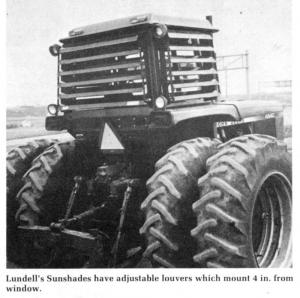 "We think it's the best new comfort feature for tractor cabs since air conditioning," says Dan Kinneson, Kimball, Neb., of his company's new Sun Shield. "Even if your tractor has air conditioning, the Sun Shield will allow you to run it at a lower setting. Our tests show the shields will keep the cab 20 to 30% cooler during hot summer months, providing shade-tree comfort without reducing visibility. The louvers are angled so as to keep the sun out, yet don't obstruct the driver's view."