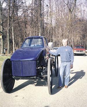 "The cab and hood extend only 1 in. past the frame compared to about 1 ft. on the original pickup which provides more room for the big wheels to turn. I can turn as short as I could before with the original wheels. There's room for another passenger but it's very tight. It'll go up to 40 mph, and I never have to worry about getting a flat tire. I spent about $4,000 to build it."