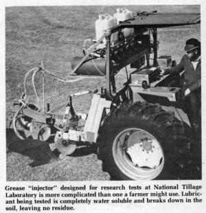The experimental project is a cooperative effort involving NTML, Nalco Chemical Co., and International Harvester. Several agricultural research stations in Alabama and Georgia will be testing the new "grease injector" concept this spring, along with individual farmers.