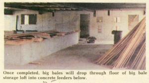 The loft has a false floor that's located directly above concrete round bale feeders below. A winch to be installed in the loft will be used to remove the false floor and to drop bales down to the feeders.