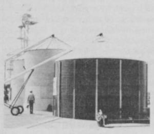 Developed by Long Manufacturing, Tarboro, N.C., the bin is glass-lined, colored blue, equipped with a breather bag and designed for sealed storage of high moisture corn.
