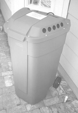The Zap-N-Trash garbage can is a standard 32-gal. plastic rolling bin fitted with a special lid featuring five holes that lead to a zapper. Once inside, insects fry on an electrified grid. Dead insects drop into the can with the trash so you simply empty them right along with garbage.