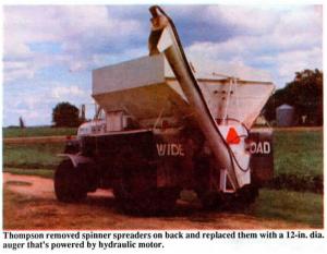 "I can convert the truck back to a fertilizer spreader by removing the auger and motor and putting the spinners back on," says Thompson.