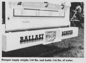 New Water-Filled Bumper For Pickups PICKUPS Accessories 7-4-3 "With the new ęBallast Bumper' on your pickup, you'll get a better ride when not carrying any cargo and improved traction in slippery conditions," says Willard Hanson, Elk River, Minn., designer of the just-introduced rear bumper that you can fill with water or other liquid for extra weight.