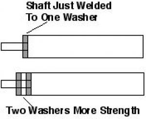 Don Voss, Spiritwood, Sask.: "To re-pair combine pickup rollers, round baler rollers, Hesston straw chopper rotors, and any other rollers that have shafts with only one washer supporting the end, we've come up with a handy repair. We install two washers inside each end of the roller, with one at the end and the other a couple inches inside the tube. We weld the washers to the shaft, then machine them in the lathe for a tight fit inside the tube. Makes them a lot stronger. For example, Hesston choppers get out of balance when the single washer bends slightly. We can save these expensive rotors with this simple repair."