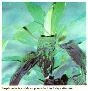 Spray Tracer is available as either a purple or red coloring. The dye has been cleared with the EPA as safe to both crop and humans and, added at the rate of a pint per 30 gal. of spray mix, it shows up vividly wherever the spray is aimed.