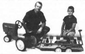 I am the new owner of "Just Like Dad's", which was started by Richard Follmer, Hudson, III. We sell 1/5th-scale miniature farm equipment designed for pedal tractors. Our current line includes a disk-chisel, box scraper, 6-row corn planter, gravity wagon, auger wagon, manure spreader, stalk shred-der, machinery trailer, and tandem disk. The equipment looks just like full-size equipment and is available in red, blue, green and construction yellow. (Cyd Koehler, "Just Like Dad's"; Rt. 1, Box 71, Benson, /IL 61516 ph 309 394-2211)