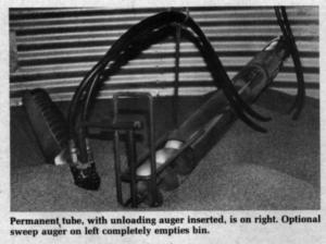 Barb Gullickson, promotions manager for the manufacturer, Keho Alta Products, Barons, Alta., notes that the center unload system easily adapts to existing bins with wooden or concrete floors.