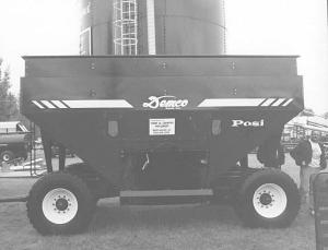 That's why we recently unveiled our prototype Demco "Posi Flow" 650-bu. gravity wagon at the Clay County Fair at Spencer, Iowa - the world's largest county fair. The GF 650 sports a new paint job but maintains the same side and end pitch as our smaller boxes, which farmers have dubbed the "best unloading boxes on the market." The 24-ton running gear is fitted with 22.5 by 13.5-in. 10-bolt wheels and 4 wheel brakes. We had several of the 650's in the field this season and expect to be in full production with them next season. They'll list for under $10,000. We're also field testing a new 750-bu. box for possible introduction in 1996. (Tom Sheffield, Dethmers Mfg. Co., P.O. Box 189, Boyden, Iowa 51234)