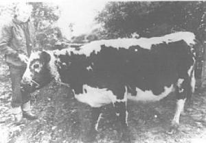 O'Leary bought Big Bertha (a Dremon) as a 2-year-old for $14 at a fair in 1946. Big Bertha was not only listed in the Guinness Book of Records as the world's oldest cow (49 years, nine months) when she passed away the day after Christmas, 1993, she's also listed as the world's most productive, having 39 calves.