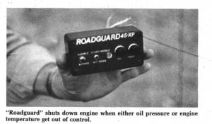 Road Tech Inc., Columbus, Ohio, says it's new Roadguard engine warning controls automatically shut down engines when they detect loss of engine oil or excessive coolant temperatures. The controls ground out the coil on gas engines and shut down the fuel line on diesel engines. If the vehicle is equipped with warning lights, no change is needed to the oil pressure or coolant temperature sending switches located on the engine. If your engine is equipped with gauges, the installation of a "tee" and a temperature and pressure switch for a warning light system is required. Complete installation instructions are supplied with the unit.