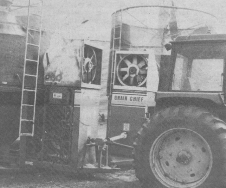 Dennis Klein, Crooks, S. Dak., liked his 450 Grain Chief grain dryer but he needed more capacity. He couldn't justify the price of a bigger dryer and he didn't want to tie up a second tractor, so he bought a second Grain Chief dryer and powers both machines off a single tractor using a splitter gearbox.
