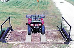 "The cables have about 7 in. clearance from the ground, which is good for most types of equipment," says Rayl. "ATV's generally have less than 7 in. clearance, so I place two 2 by 12-in. boards under the wires. This reduces clearance to only 5 in., allowing ATV's to pass over with no problem."