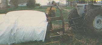 "We've seen a lot of commercial-built bale baggers at farm shows that do exactly the same thing our home-built bagger does. The big difference is that factory-built units cost much more" says Wayne Youngblom about a manually operated bale bagger he and his father, Warren, built last fall.