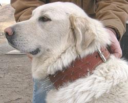 Each collar is personalized for the dog that will wear it. Short hair dogs get collars lined with sheepskin, while heavy-coated dogs get smooth leather. Cost is $45 plus S&H.