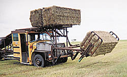 Anderson says his home-built rig compares favorably with commercial truck-mounted bale haulers.