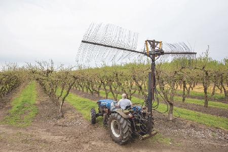 Canning peach producer Frank Bavaro gets more peaches at less cost with his modified Darwin String Thinner. While the Darwin works great for thinning blossoms on trellised and hedged peach trees, it doesn't work on more traditional tree shapes. Now Bavaro and others with traditional orchards can also benefit from blossom thinning.