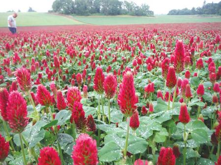 Kentucky Pride crimson clover flowers up to 2 weeks later than other crimson clovers, handles cold temperatures, and out-produces competitors. It has been shown to create as much as 100 lbs. of N, has longer roots and produces 4 times the biomass of Dixie, a leading competitor, according to Hall.