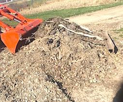 “I built what I call a ‘poor man’s’ grapple fork using an old steel railroad tie that I chained to the bucket on my Kubota 23 hp. loader tractor. The railroad tie holds the load together, allowing me to haul loads 3 times bigger than the bucket could by itself. Works great to haul and load loose material such as compost, brush and mulch,” says Quinton Tschetter, Oskaloosa, Iowa.