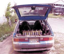 Working with an electric motor dealer in California, Herrington bought an electric traction motor made by Advanced DC Motors, East Syracuse, N.Y. It bolted right to the existing transmission. He outfitted the little Geo with nine 12-volt batteries carried in the back seat and trunk. With a full charge, Herrington can drive at up to 50 mph for 20 miles. A recharge takes him about three hours.