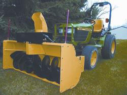 "Last winter I built a front-mount snowblower for my Deere 4100 compact utility tractor. The blower is 59 in. wide, 28 in. tall and weighs about 350 lbs.," says Jim Gerken, Zumbro Falls, Minn.