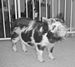 Kunekune, which means short and fat in Maori, range in size from 100 lbs. to 200 lbs. when full grown. Unlike the commercial hog of today, which has been bred for leanness, the show quality Kunekune is described by Rigbee as being "unhealthy" fat.