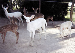 "White deer are extremely rare and have been bred in captivity for so long that they tend to be much more tame than brown ones," he notes. "When people see the white ones, their first thought is that they're albinos, but they're not. Albinos are more susceptible to disease and usually don't survive long. White whitetails have brown eyes, just like those with brown."