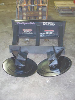 According to the pair, the unit consists of two well-braced 19-in. dia. blades made of heavy, high carbon steel. To make them, they modified new rolling cutters off a V-plow and added a good bearing with a center support. You don't have to take the center support out to change the blades, as it's just there to protect the bearings and hub, they point out.