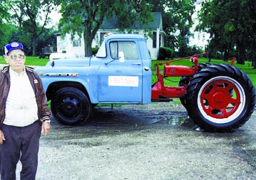 Kenneth Leahy, Pleasant Plains, Ill., got the idea for this "trucktor" and asked Don Moss of Tallula, Ill., to build it for him. "It gets a lot of attention at every parade or tractor pull I take it to," says Leahy. It consists of the back half of a 1940's Farmall H tractor and the front half of a 1960's Chevrolet 2-ton truck. Leahy brought both ends to Moss and let him figure out how to marry them together. "It was fairly complicated to build," says Moss, who spent about three weeks on the project. "I made a plate of 1/2-in. thick steel to fit the bell housing of the truck transmission and flared out both sides so they'd fit just inside the truck frame. I added 1/2-in. thick gussets to form a box to add strength. I then bolted the plate to the tractor and welded the boxing to the truck frame. "I made a 1/4-in. thick adapter plate for the clutch by forming two 'donuts' the same size as the clutch plate. I took the yoke off the driveshaft of the truck and welded that to the donuts." The driveshaft connects directly to the tractor driveshaft. Only the truck clutch is used when in operation since the gear of the trans-mission on the tractor, which acts as high/ low range, is set before the truck is started. The one-of-a-kind gearing is ideal for "slow races" often held at tractor pulls, Leahy notes. "It'll run at a snail's pace 'creep.'"