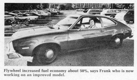 "We did well with this prototype, but with top-flight components, we expect to be able to achieve a 100% increase in miles per gallon," says Frank. He has received a grant to build an improved flywheel model and notes that at least one car manufacturer, Volvo of Sweden, is already working on the concept.