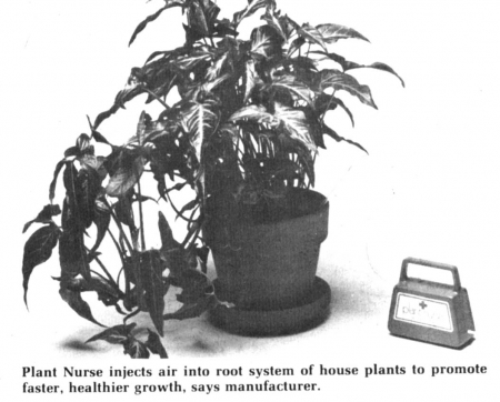 "Housewives are buying them up about as fast as we've been able to stock them," reports a Denver, Colo., retailer, one of the first in the nation to sell the new Plant Nurse, a  machine which mechanically injects air into the root zone of potted plants.
