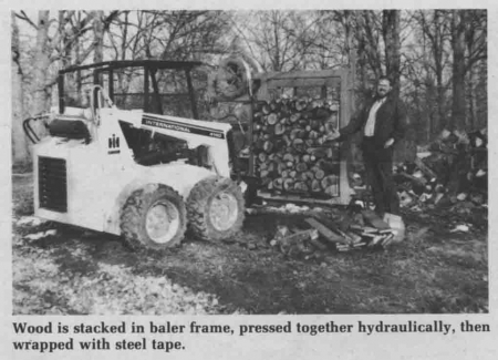 A baler for chopped wood? Sounds unusual but Jim Fincham, Leon, Iowa, builder of wood balers, says they work great for compressing firewood into a tight bundle that's easy to load, transport and store.