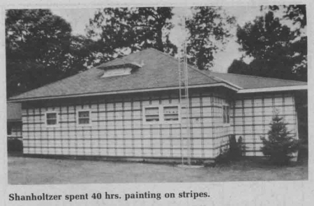 "I was able to get the lines very straight by measuring in from the ends of the walls and measuring down from the top for the large horizontal stripe. People stop by to look all the time and most seem to think it looks very nice," says Janet, noting that the vertical stripes on the house are 1 in. wide and the horizontal line is 1 1/2 to 2 in. in width, painted in dark green.